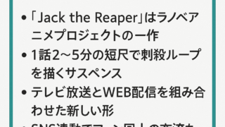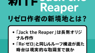 2025年夏アニメ『Jack the Reaper』は、取調室から始まる衝撃的な展開と、死を繰り返すタイムリープ要素が話題を呼んでいます。リゼロ作者・長月達平による新作として注目され、短尺ながらも濃密なストーリーと謎解きが楽しめる作品です。...