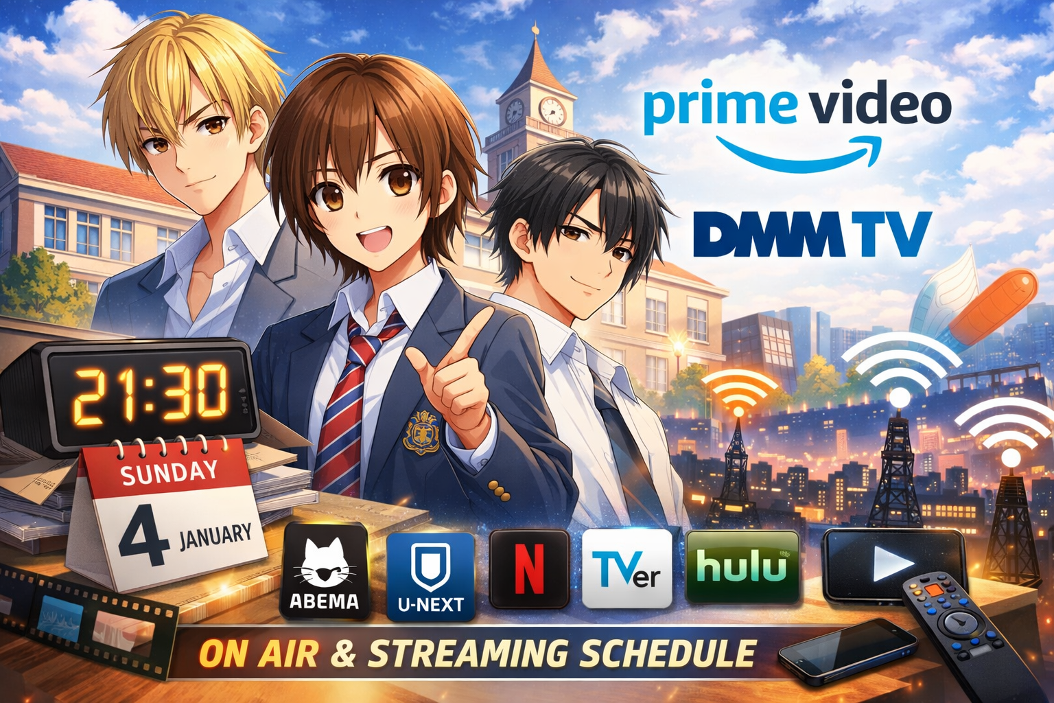 地上波放送スケジュールに加え、Prime Videoでの地上波1週間先行配信、各配信サービスの更新時間、無料配信情報までまとめています。